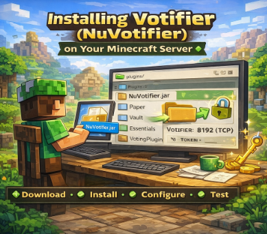 Learn how to install Votifier (NuVotifier) on Paper/Spigot servers and proxies, configure the voting port, and connect your server to voting sites like MCVoting. Includes troubleshooting tips, test commands, and best practices.